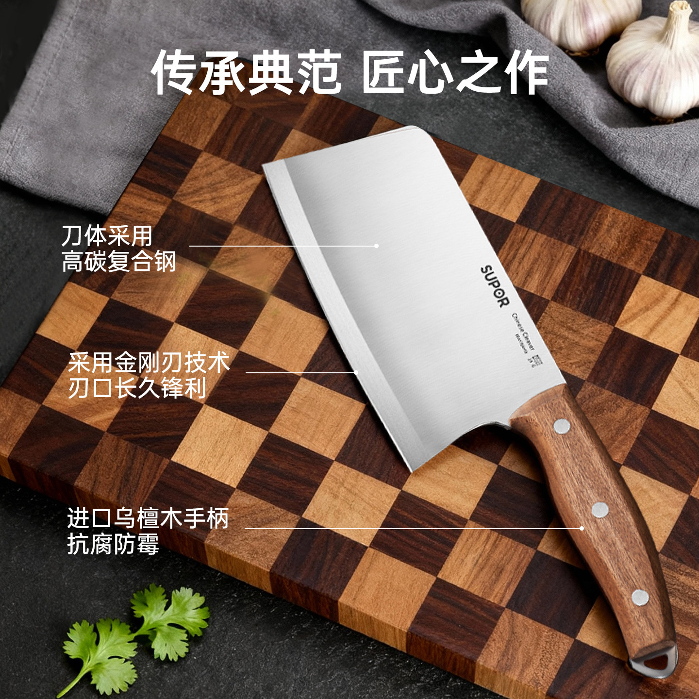 十八子作菜刀家用切片刀厨师专用斩切刀具厨房菜板菜刀二合一套装