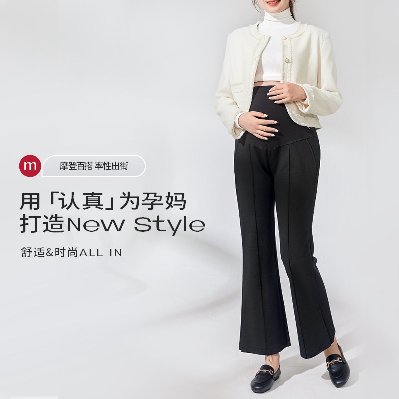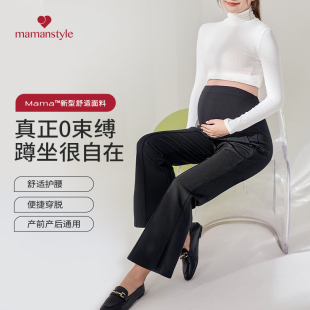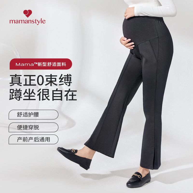 微喇侧开叉百搭裤 通勤阔腿裤 mamanstyle孕妇喇叭裤 子 新品