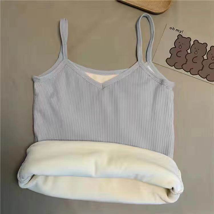 秋冬季 无痕德绒保暖背心女士圆领内搭加绒加厚吊带贴身内穿打底衫