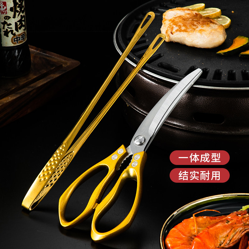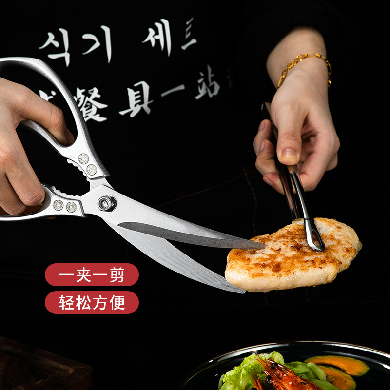 韩式 多功能厨房剪刀商用强力食物剪烧烤夹 不锈钢烤肉剪刀夹子套装
