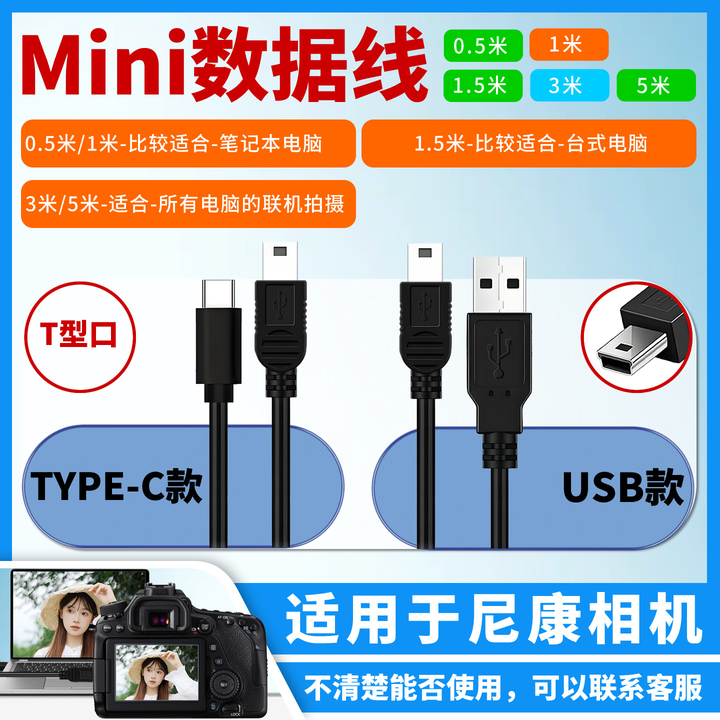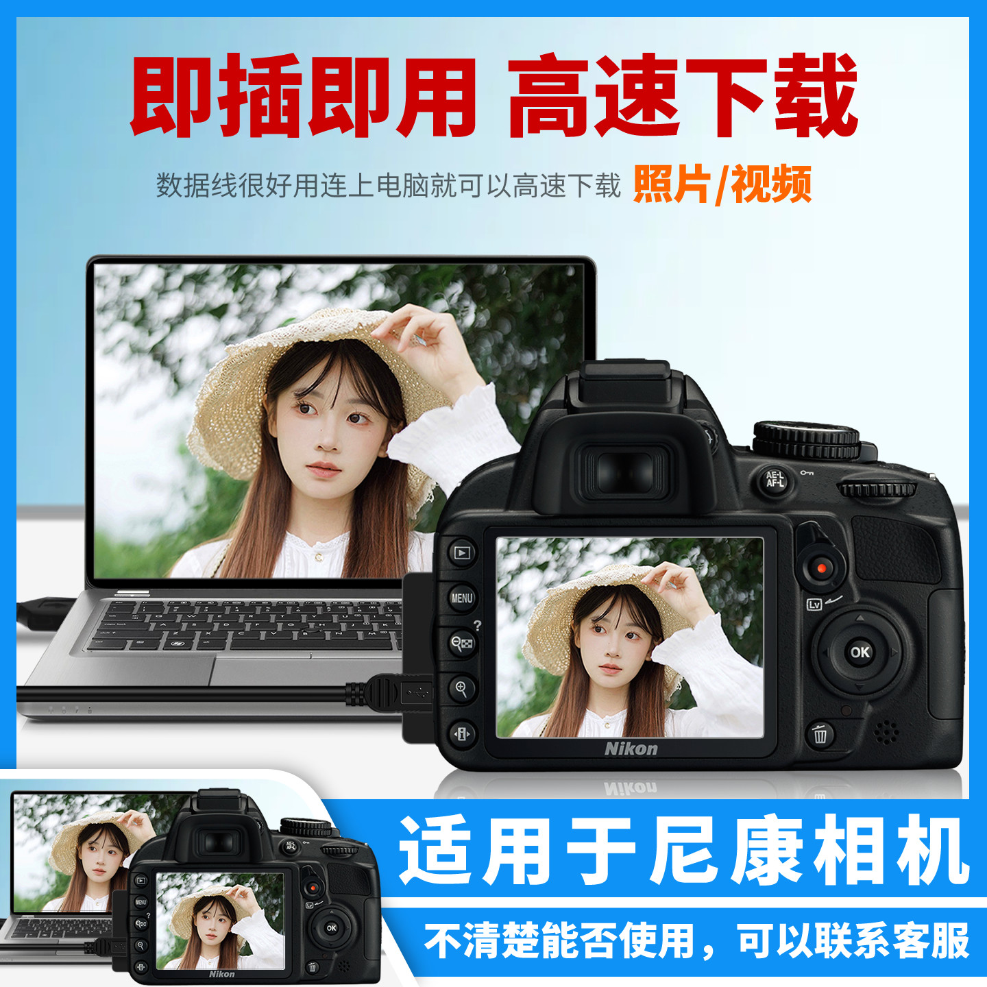 D600 D7000 D80 振发 D3000 D3100 D700 D300s单反相机连接电脑联机拍摄线直播USB线 适用于尼康数据线D90