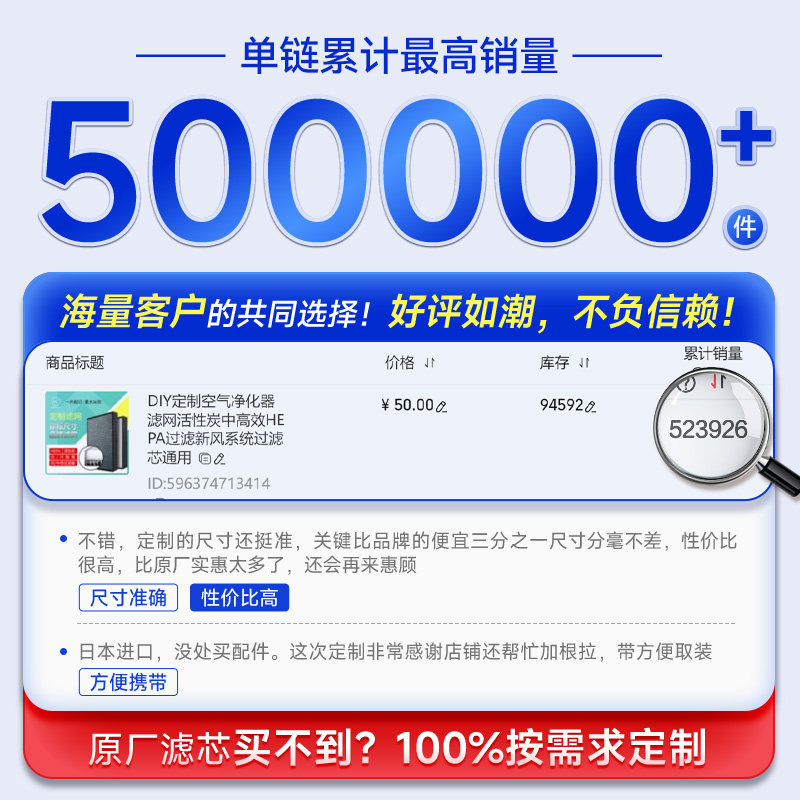 DIY定制空气净化器滤网活性炭中高效HEPA过滤新风系统过滤芯通用