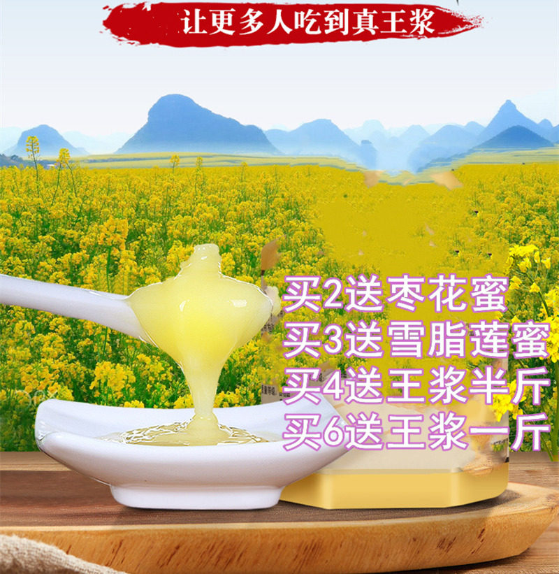 野生 蜂皇浆500g 纯天然 新鲜活性油菜花春浆 非胶囊 正品 蜂王浆