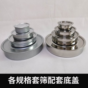 直径10 40cm304不锈钢标准分样筛子面粉筛配套接料底盘+盖子豪泉