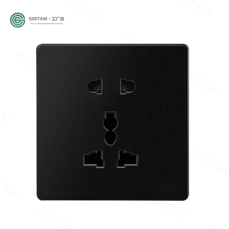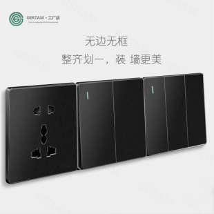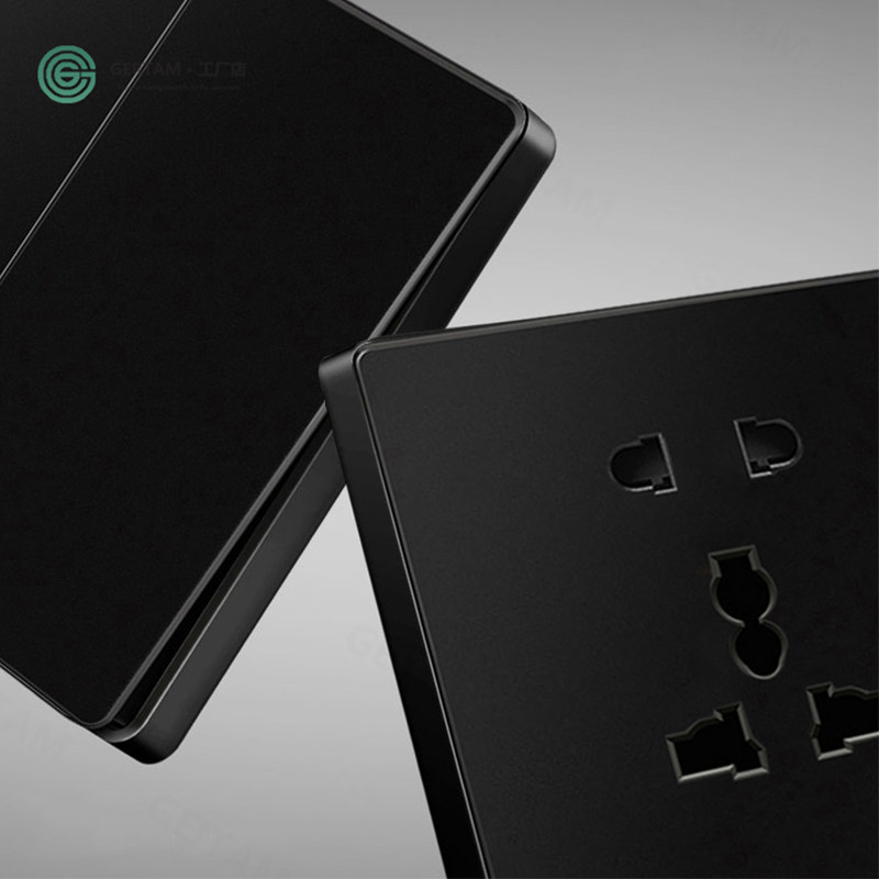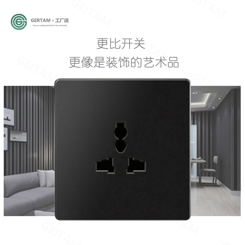 86型英标欧规黑色开关插座面板单开双联五孔圆孔插口多功能国际型