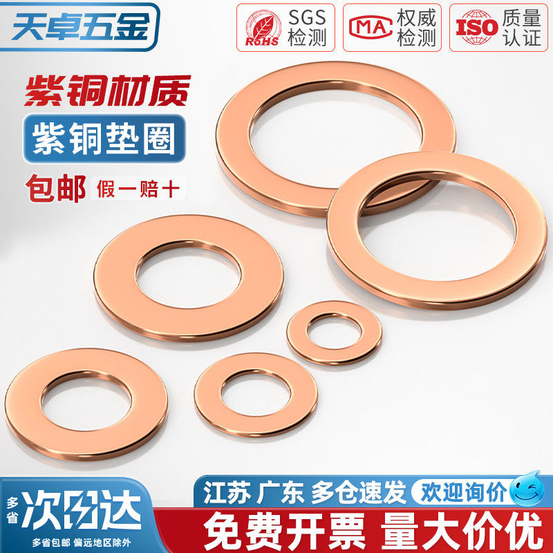 紫铜垫片船用表用平垫密封圈垫片纯铜金属螺丝平垫圈M5M6M8M10M12