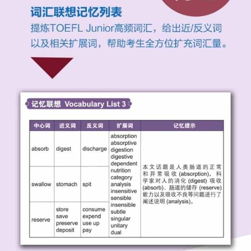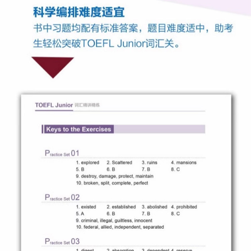 新东方小托福toefl junior 教材 新东方TOEFL 小托福词汇书伴侣 考试用书 tofel留学考试教材 美国高中申请 Junior词汇精讲精练