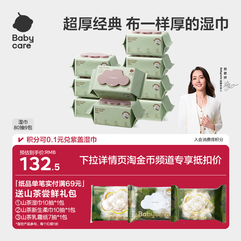 80抽 babycare婴幼儿湿纸巾手口专用新生儿童家庭装 详情领优惠