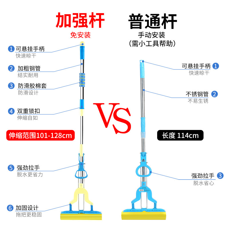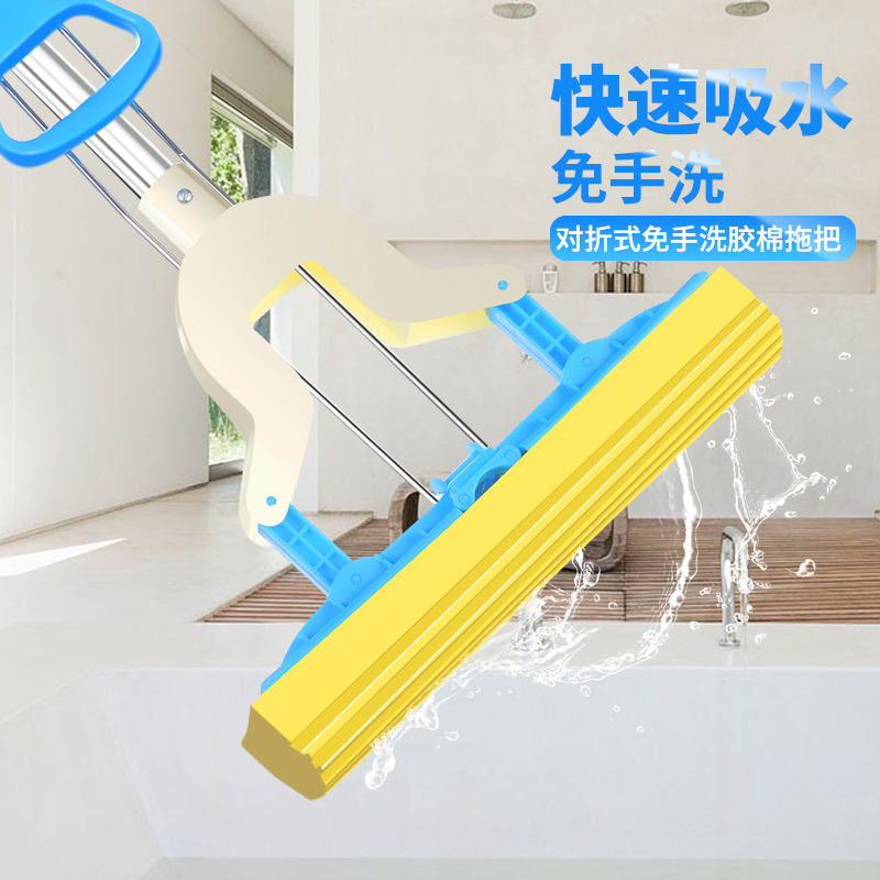 吸水海绵拖把头对折式 挤水免手洗家用胶棉懒人大号地拖拖布卫生间