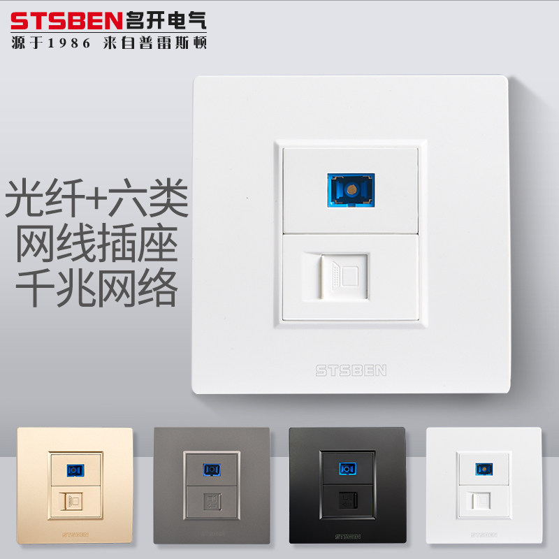 86型暗装 家用入户光纤千兆网络电脑网口面板SC光纤带六类网线插座