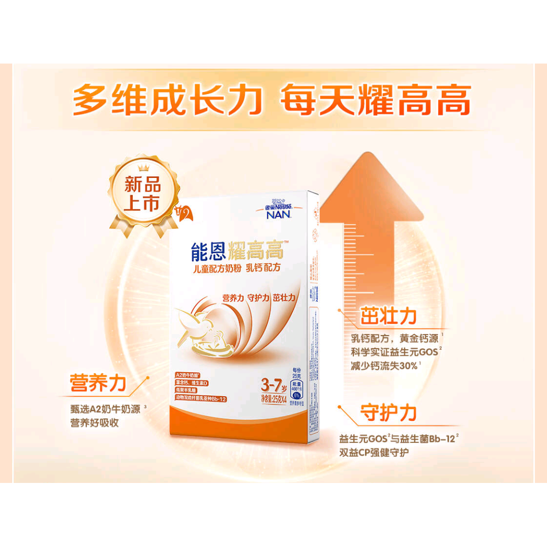 雀巢能恩耀高高儿童乳钙配方A2蛋白桶装 7岁700g 奶粉3