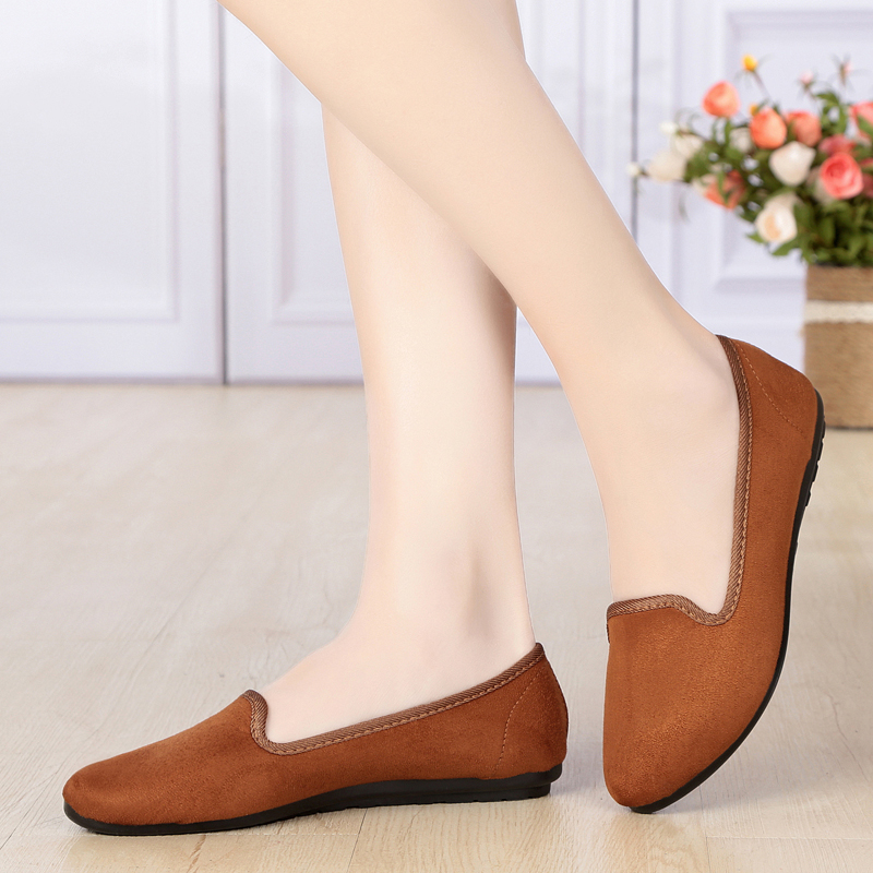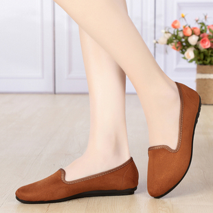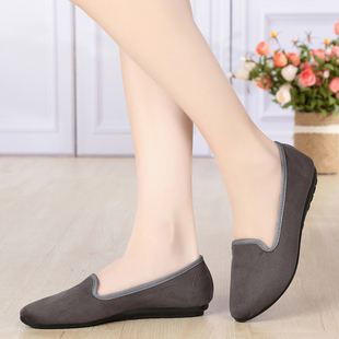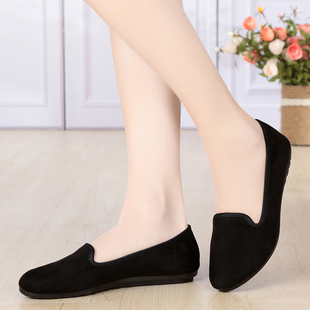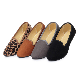 女单鞋 浅口黑色工作鞋 小尖头平底豆豆鞋 豹纹休闲鞋 时尚 老北京布鞋