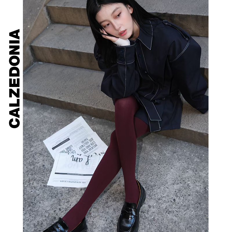 CALZEDONIA卡泽意袜秋冬光腿神器勃艮第红一体加绒连裤 丝袜MIC030