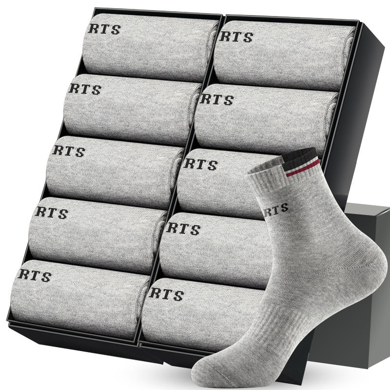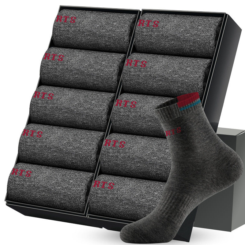 防臭吸汗厚保暖袜 毛圈加绒加厚长筒袜子冬季 雅鹿中筒袜10双装 男士