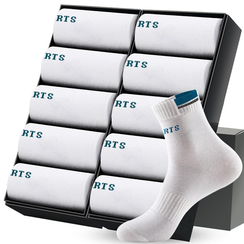 毛巾底吸汗防臭白色运动长袜 中筒袜男士 佐印袜子男款 纯棉纱线冬季