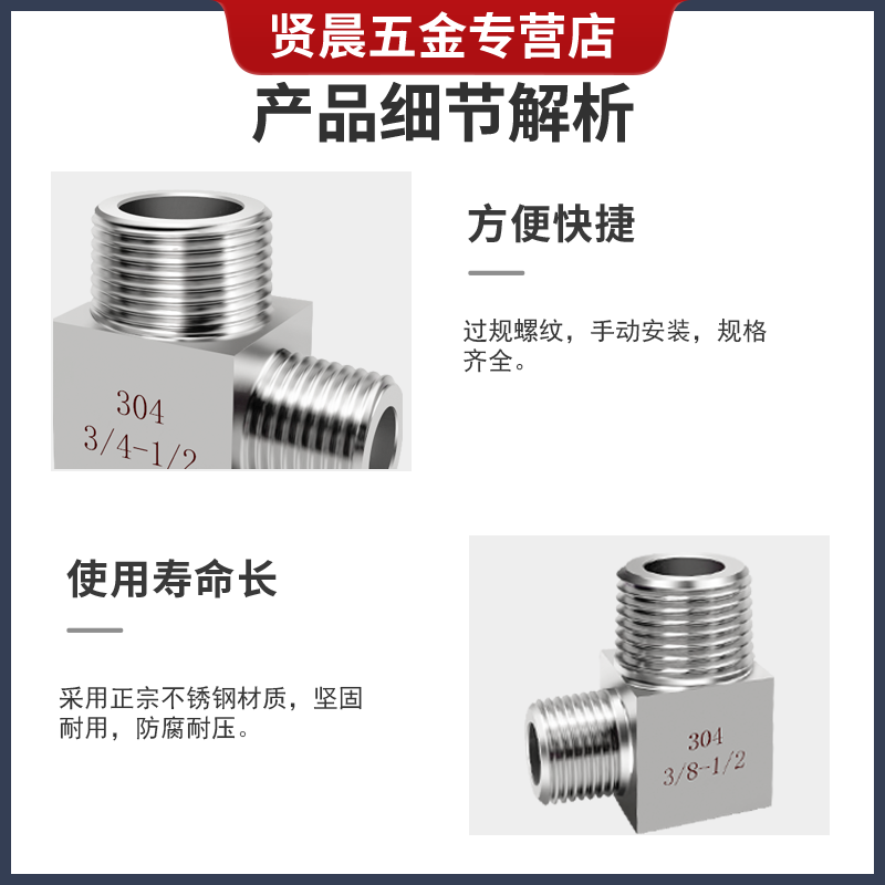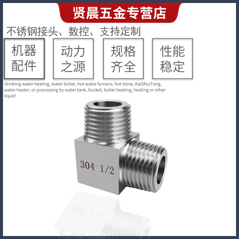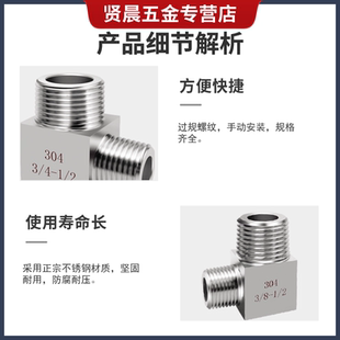 304不锈钢直角外丝变径弯头加厚转接头非标定制1 2分3分4分压力表