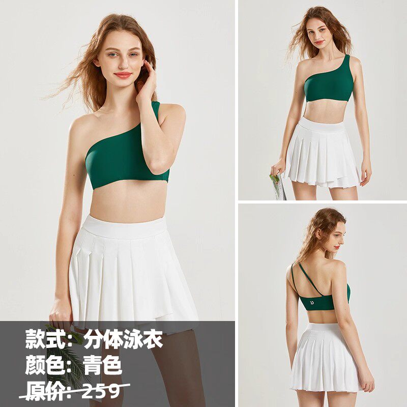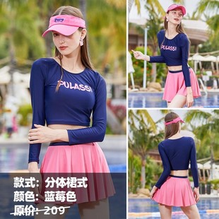 温泉无钢圈防晒海滩两件套 连体裙式 大码 泳衣女胖mm200斤宽松长款