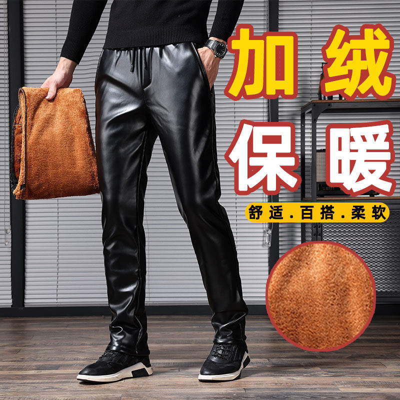 皮裤 保暖机车骑行防水防风厚裤 男冬季 小脚男士 子 加绒加厚男款 修身