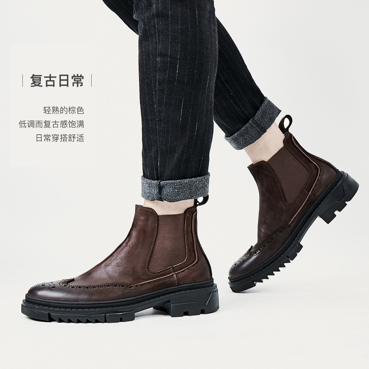 思加图2025新款 靴复古女靴J8020DD5 海伦小姐复古切尔西靴短靴时装