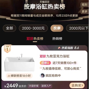 九牧官方迷你亚克力浴缸小户型独立式 缸洗浴盆YR1系列 坐式