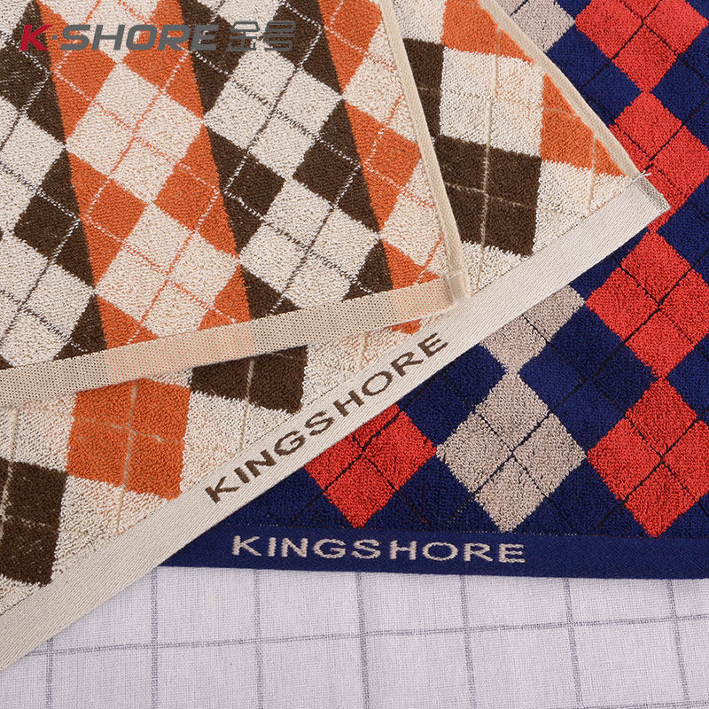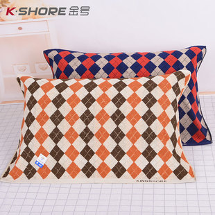 一对装 金号纯棉枕巾菱形方格英伦商务男士 深色耐脏成人厚实家用