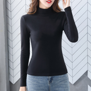 加绒半高领打底衫 t恤上衣 女秋冬百搭粉色加厚磨毛内搭潮紧身长袖