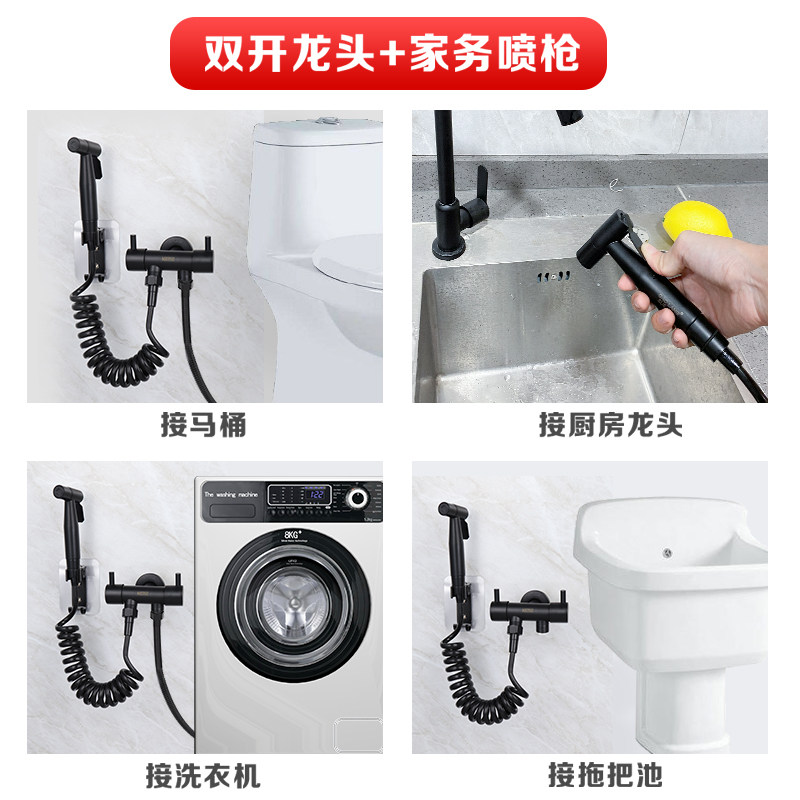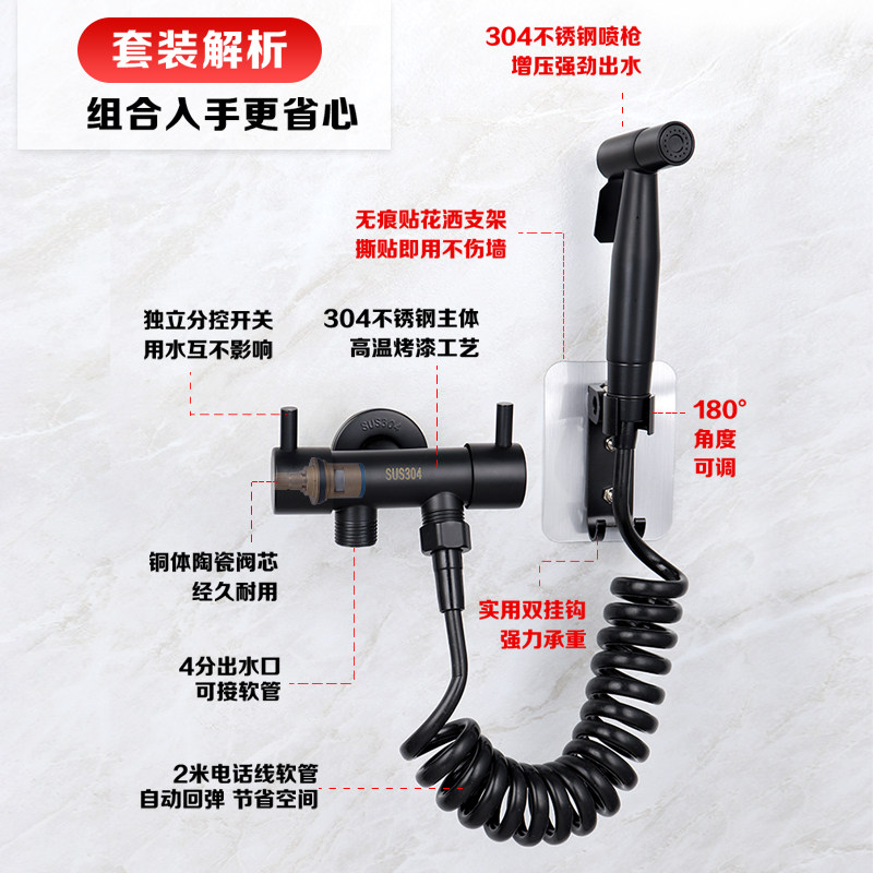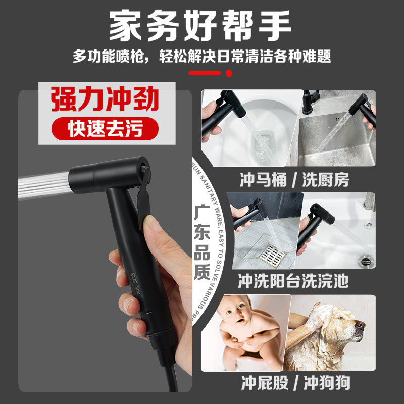 黑色妇洗器304不锈钢喷水枪马桶龙头增压喷头厕所卫生间冲洗清洁