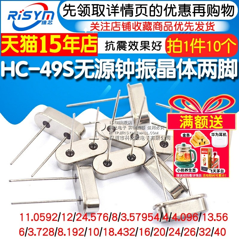 4M8M10M16M24M25M 11.0592M 石英晶振直插2脚HC 49S无源晶体12MHZ