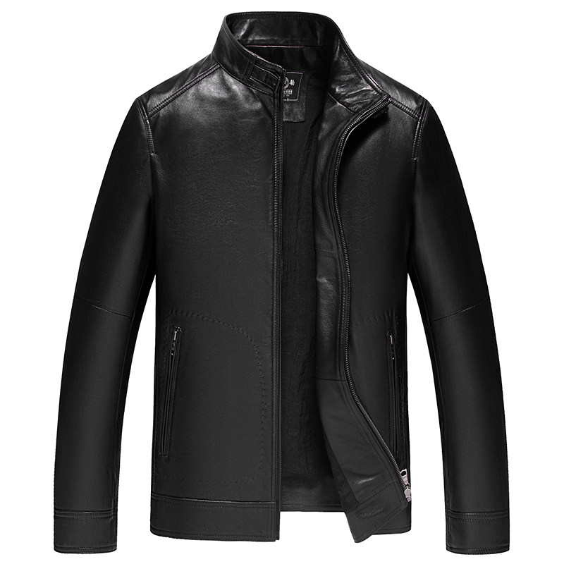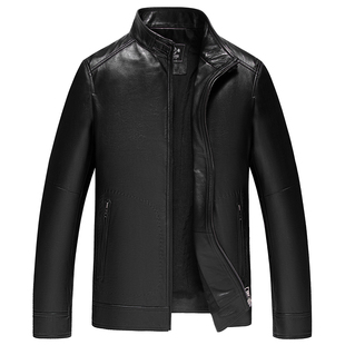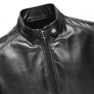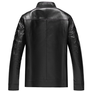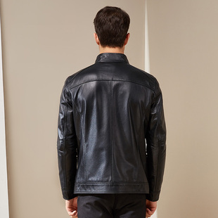 雪豹真皮皮衣男头层牛皮时尚 复古潮流机车商务休闲立领短行政外套