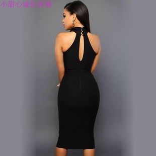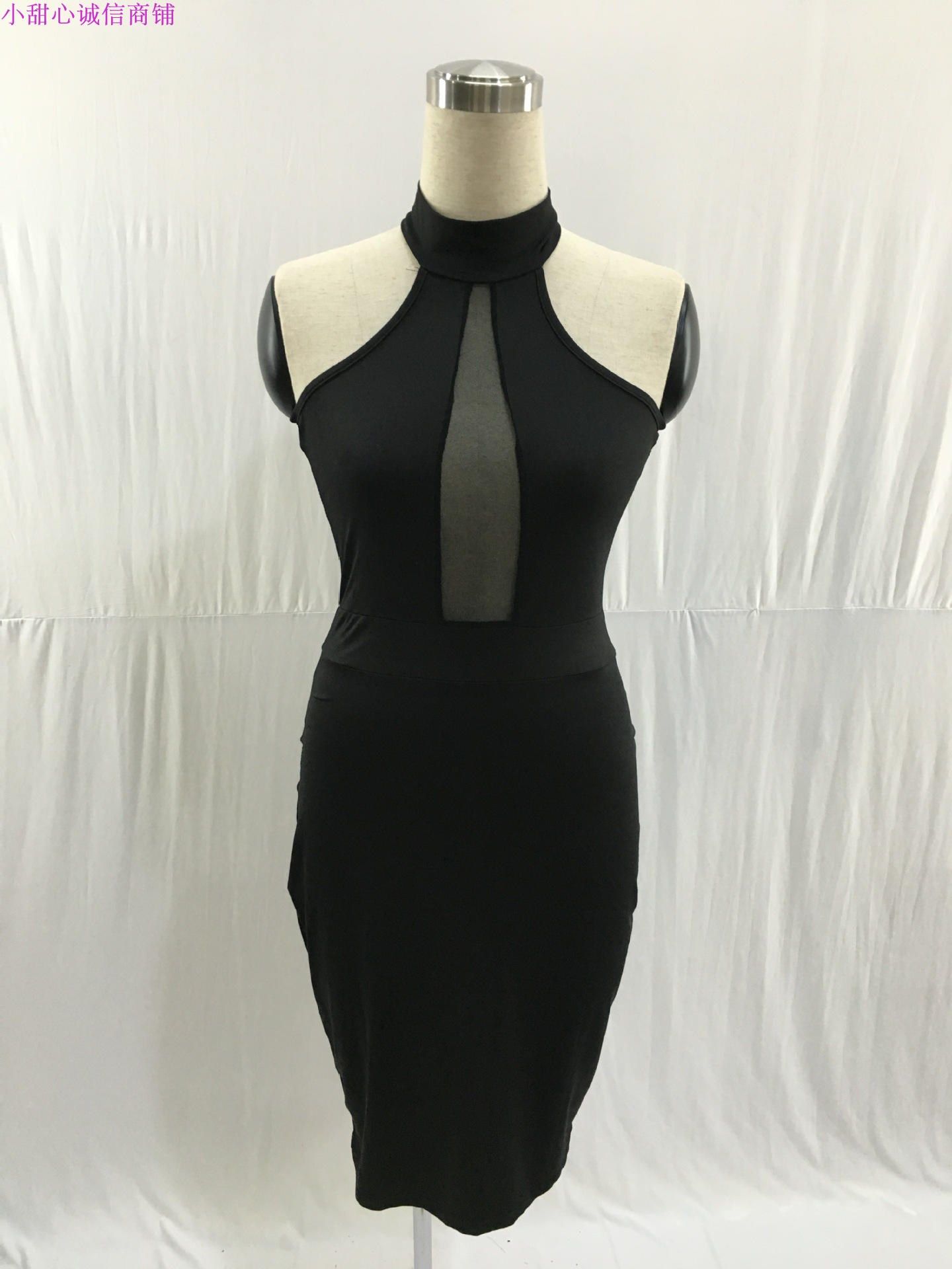 bandage 挂脖网纱拼接修身 dress 无袖 连衣裙 bodycon Women