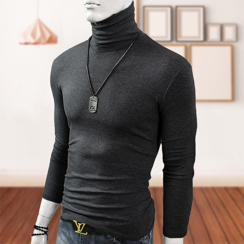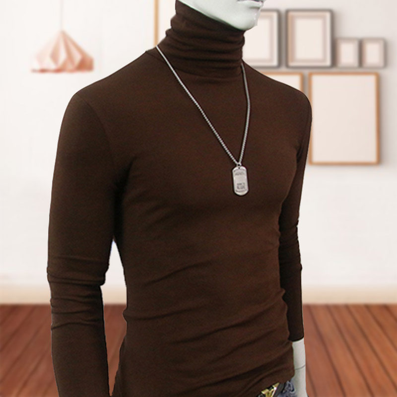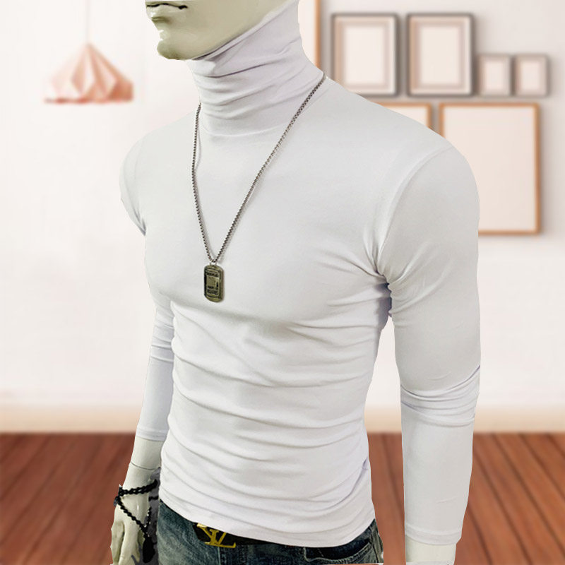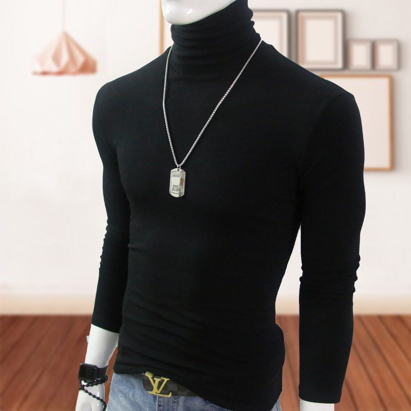 弹力长袖 秋冬纯棉高领打底衫 保暖修身 薄款 t恤体恤纯色秋衣潮 男士
