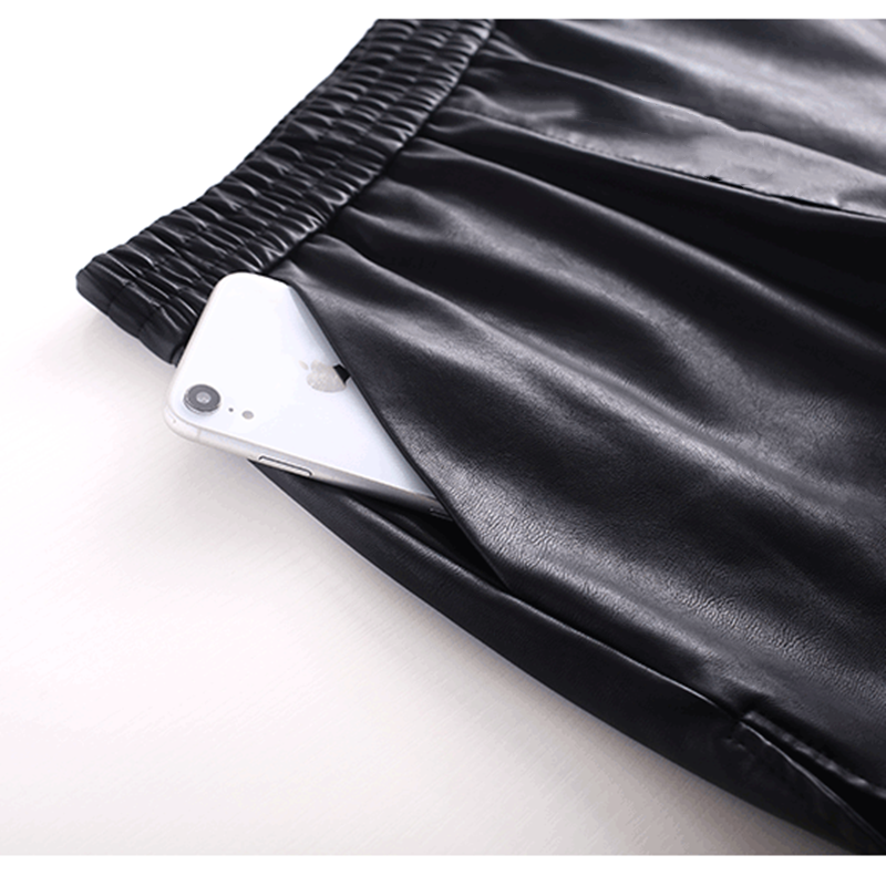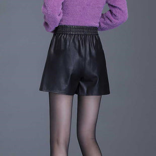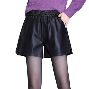 子休闲显瘦宽松百搭松紧腰PU皮裤 皮短裤 a字阔腿裤 新款 女2024春季