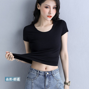 修身 打底衫 2024新款 紧身半袖 内搭黑上衣潮 夏装 纯棉白色t恤女短袖