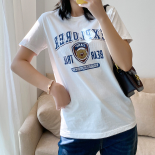 卡通小熊英文字母印花短袖 COCO大码 新品 夏装 胖妹妹宽松T恤 女装