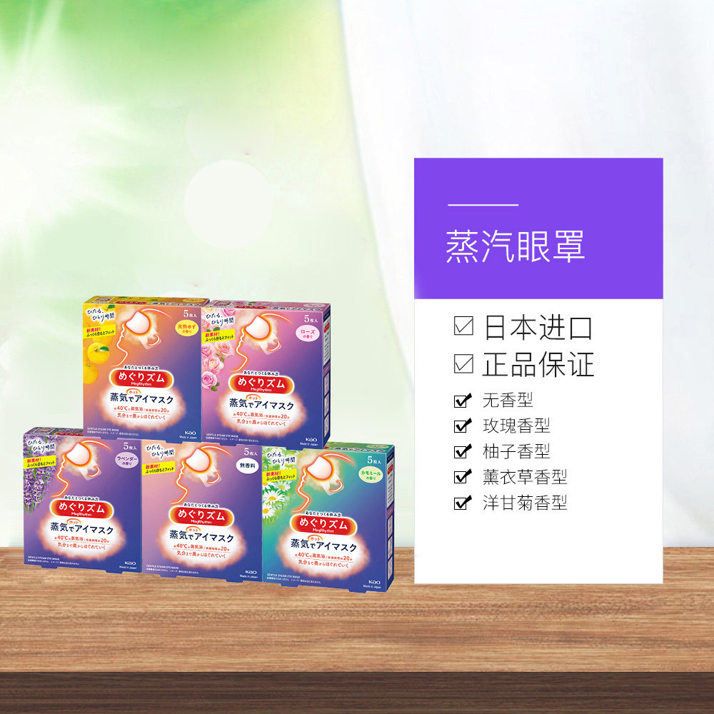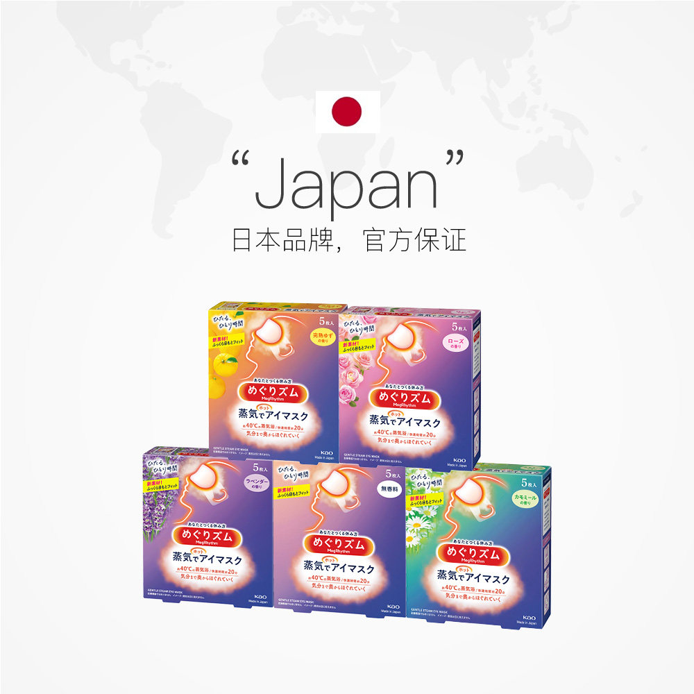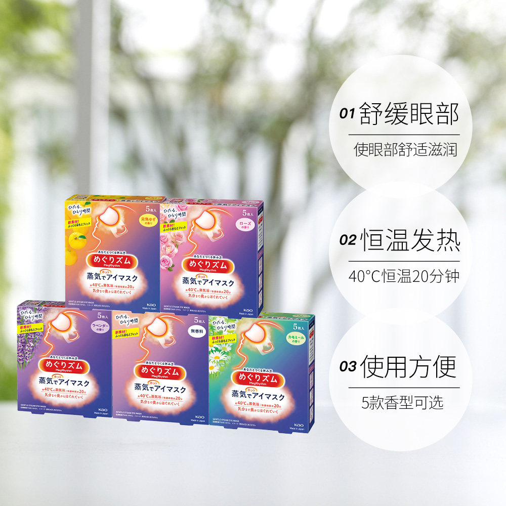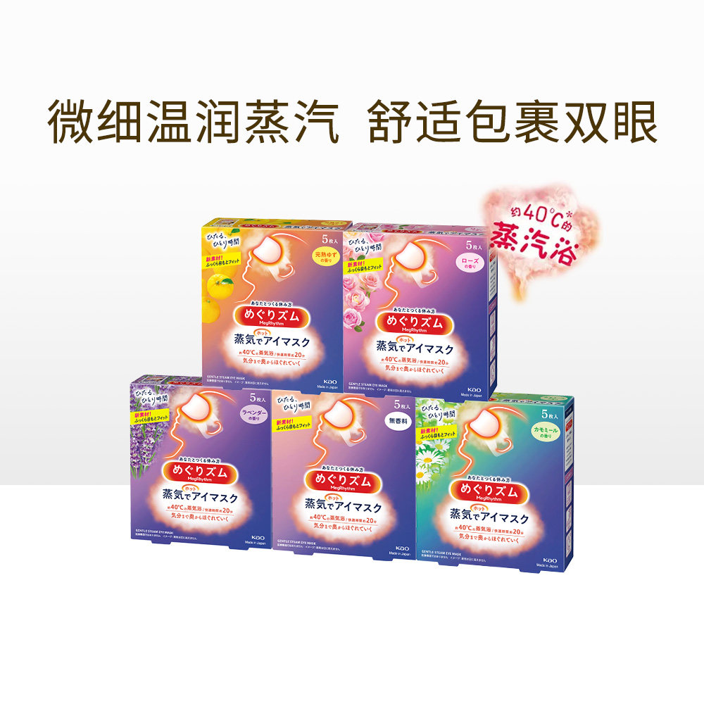 5片 官方花王美舒律蒸汽眼罩遮光睡眠 4盒多香型柚子玫瑰 自营