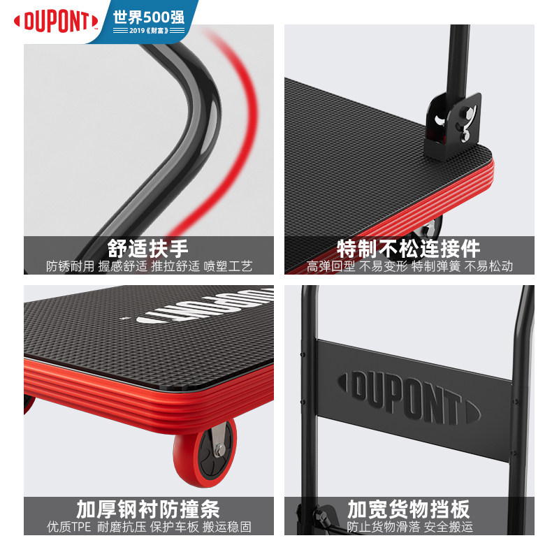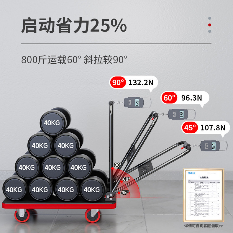 杜邦专利省力25%斜拉平板车小拖车便携折叠推手推车静音四轮拉货