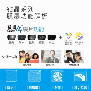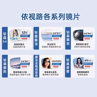 依视路镜片钻晶A4膜致近视防蓝光爱赞钻晶膜岩非球面膜御配近视镜