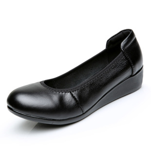 职业浅口单鞋 真皮工作鞋 工鞋 软底圆头女鞋 女黑色防滑平底上班皮鞋
