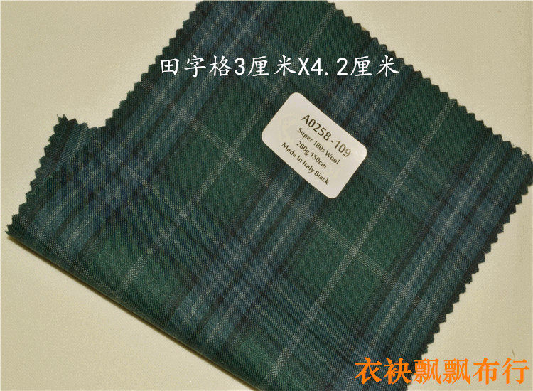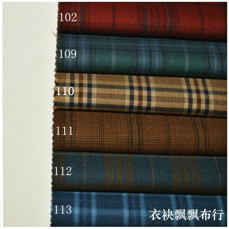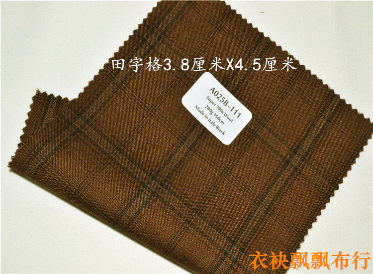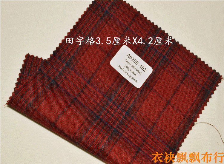 高端西服面料精纺高支暗红青色焦糖蓝色格子羊毛布料西装 子套裙 裤