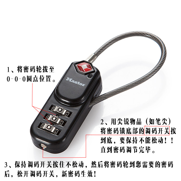 MasterLock玛斯特行李箱密码 TSA出国旅行海关锁学生背包锁 锁4674
