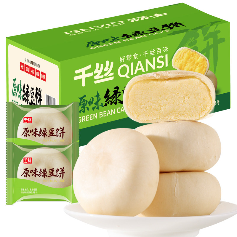 千丝绿豆饼5斤 小零食品整箱懒人速食 早餐面包糕点心特产饼干散装