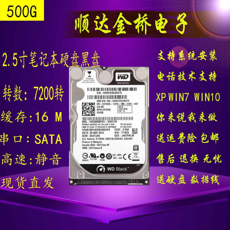 WD西部数据企业级2.5寸黑盘7200转500G笔记本电脑硬盘 9毫米盘