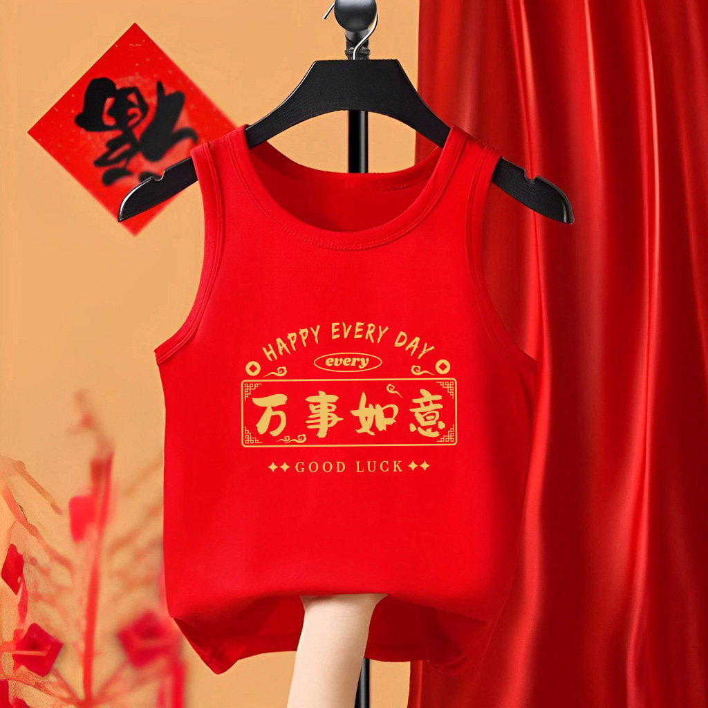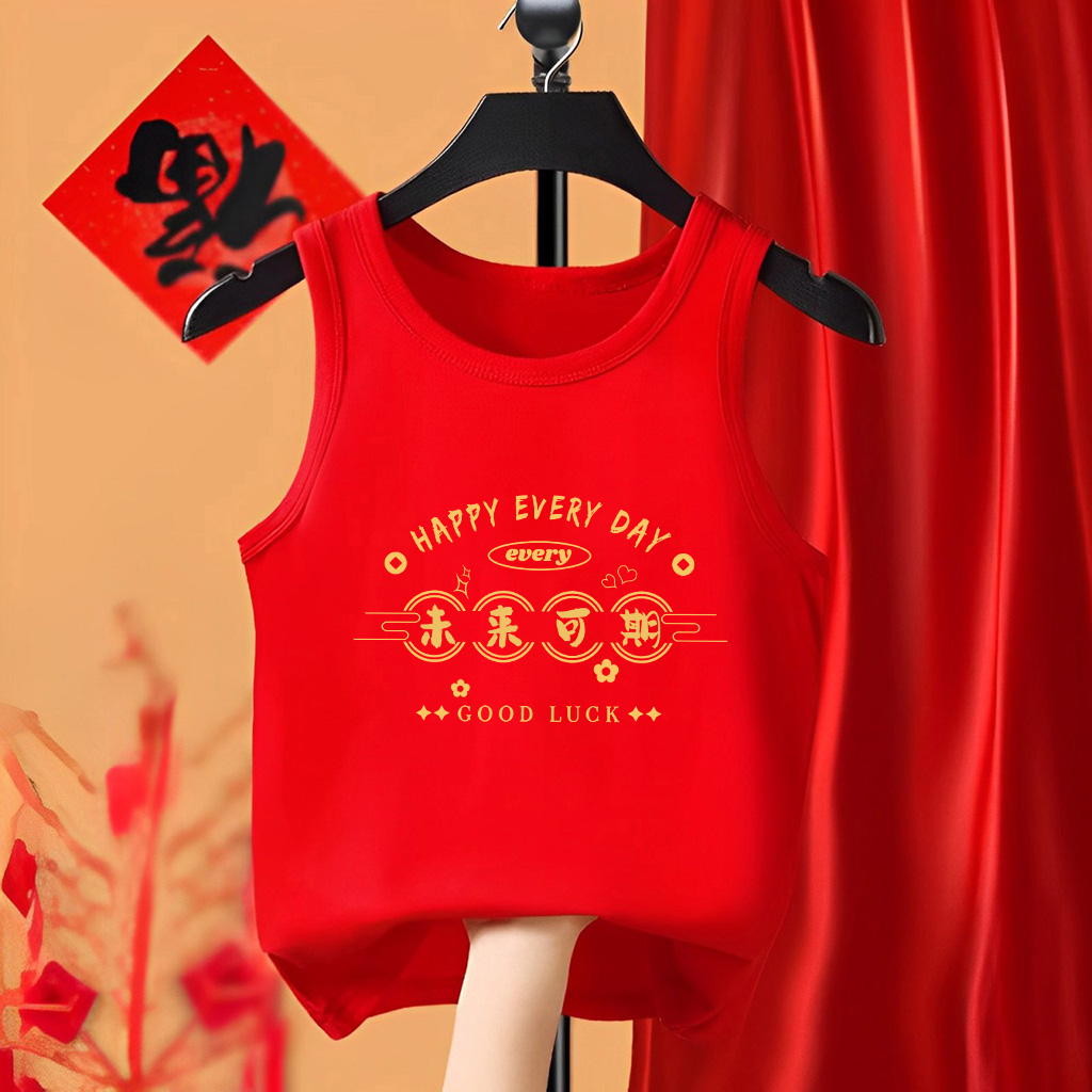 时尚 T恤儿童四季 百搭上衣拜年服 新年男女童内穿无袖 背心2025新款