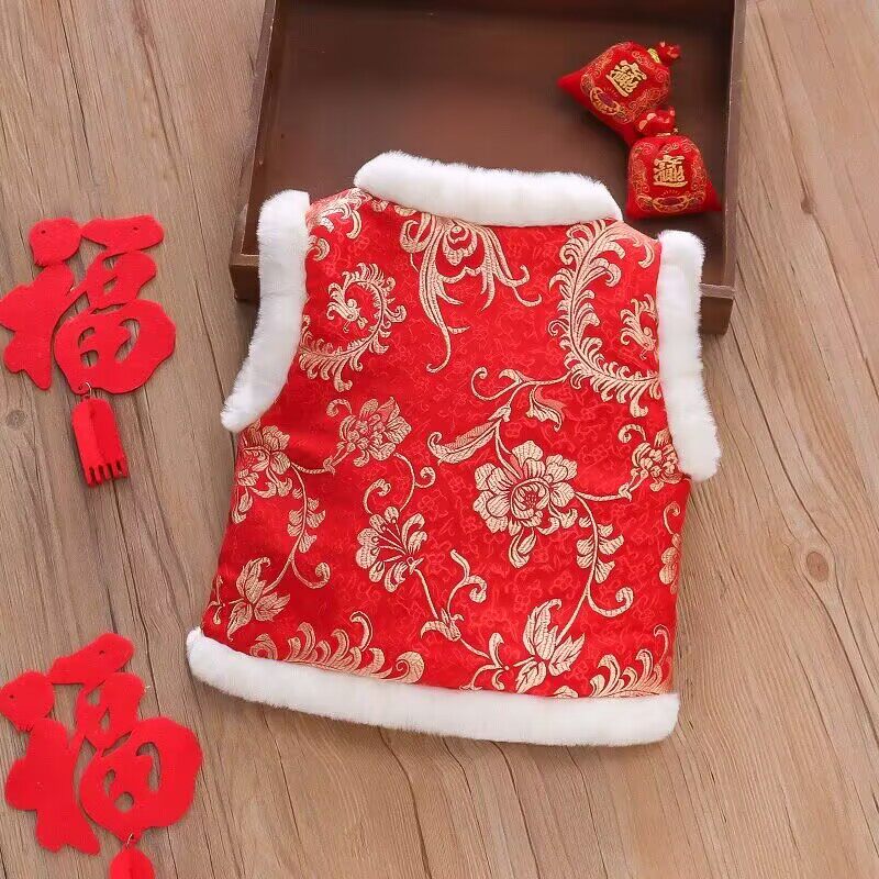 宝宝过年服唐装 汉服男童女童国风拜年背心 马甲加绒加厚婴儿新年装