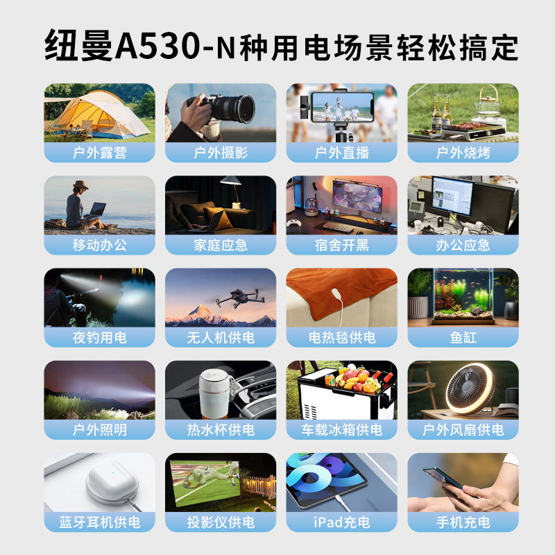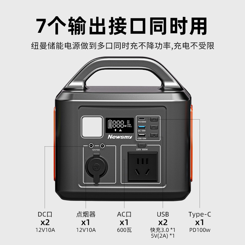 纽曼A530移动户外电源0.5度220v便携蓄电池大容量600W大功率快充停电应急自驾露营无人机车载冰箱储能电站
