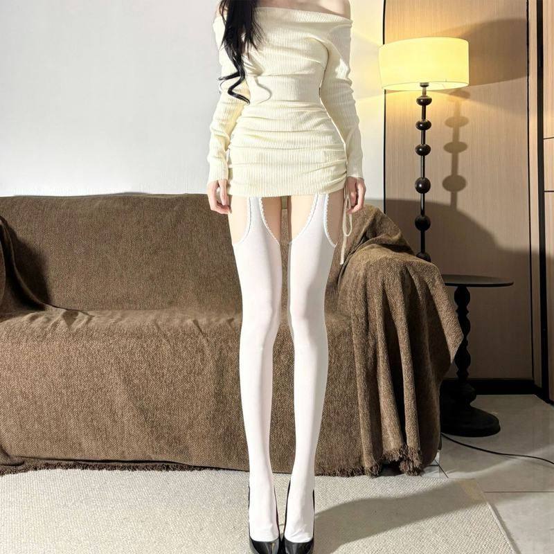 抵达一楼白丝过膝袜春夏薄款 日系白色jk大腿袜天鹅绒长筒袜女防滑