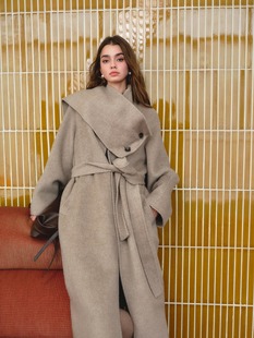 慵懒风双面羊毛大衣女中长款 灰色毛呢外套高级感
