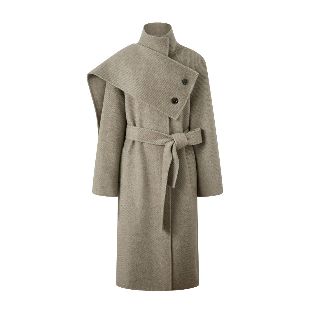 立领风衣外套 配腰带夹棉秋冬毛呢长款 PMET 多形态翻领毛呢大衣