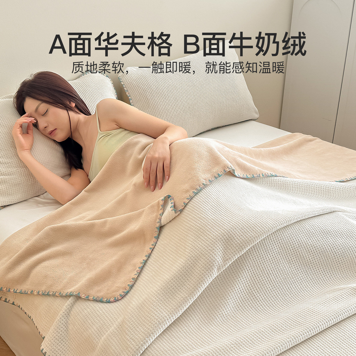 洁丽雅华夫格毛毯午睡办公室休小毯子沙发空调披肩盖毯床上用四季