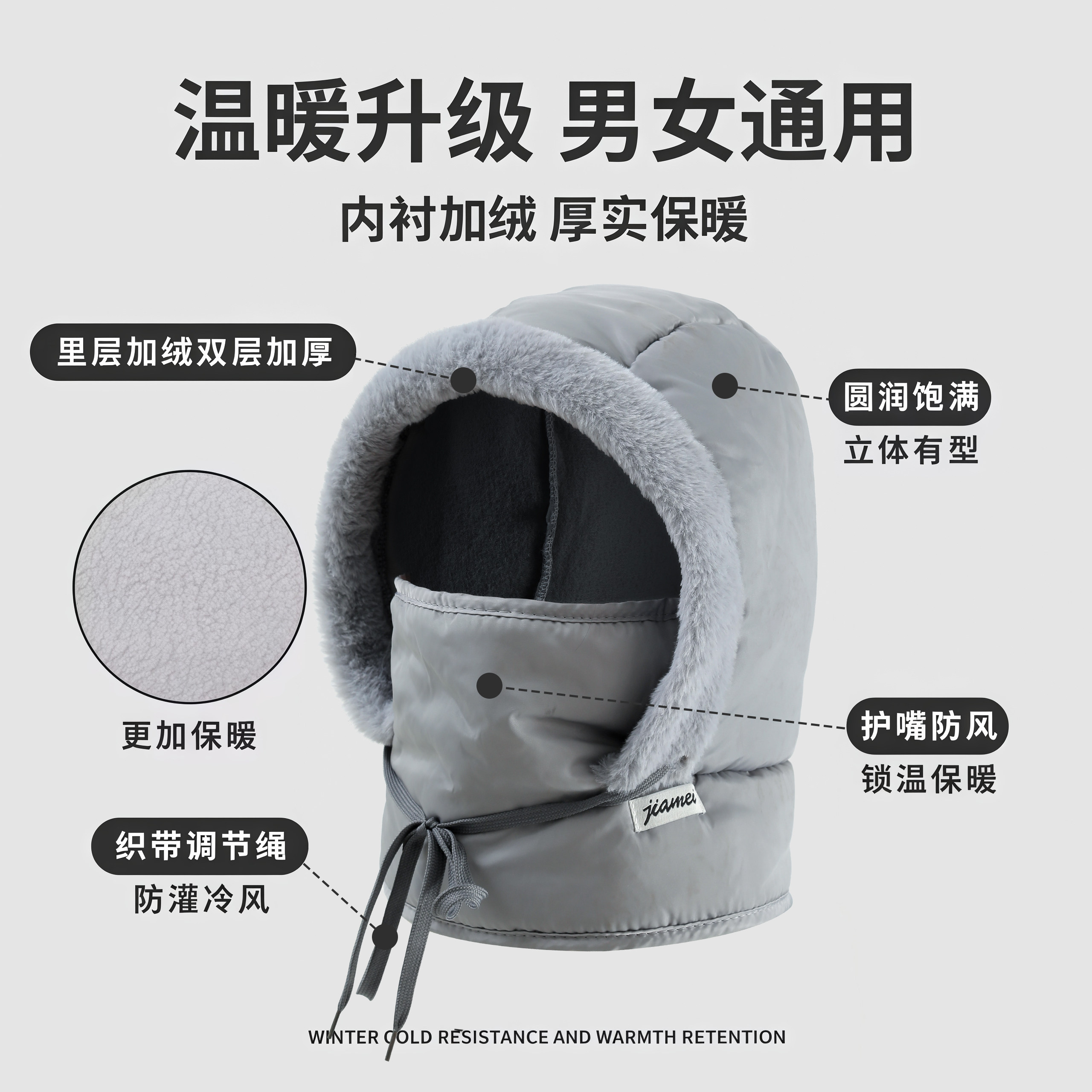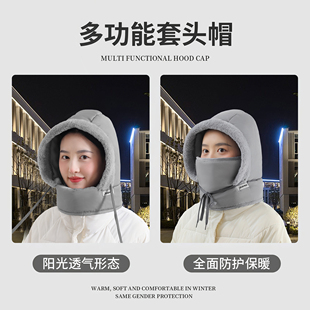 冬季 保暖头套女运动帽防寒面罩头盔内胆骑车一体帽子防风滑雪加绒